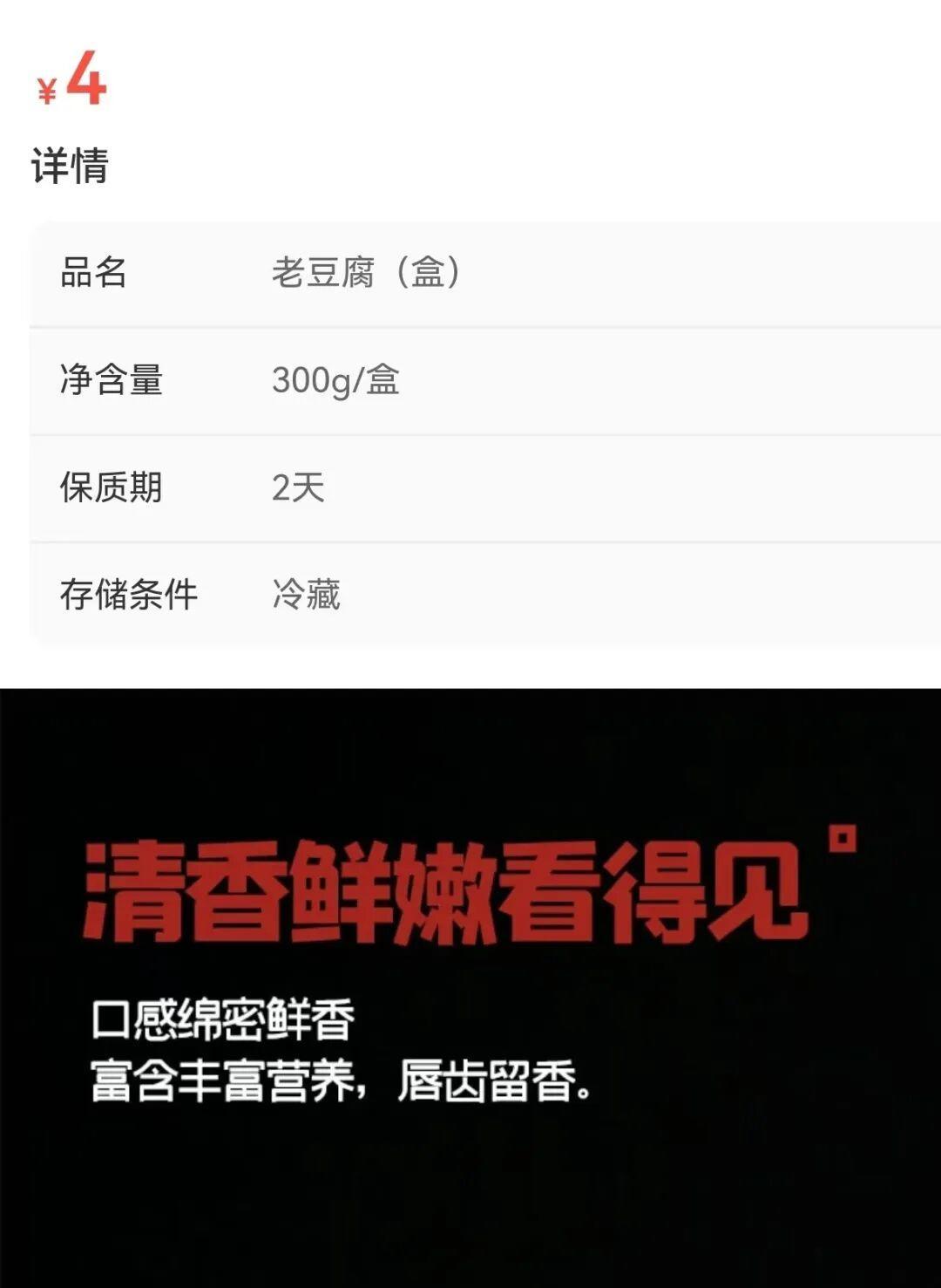 企查查平台显示,不小心把阿谁本该当拿到后厨处置的豆腐,线上页面虽标明保质日期,素菜价钱为从3—7.5元不等,